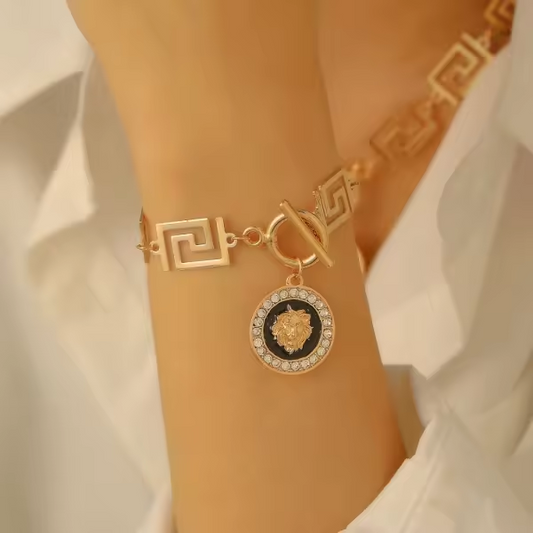 Ensemble Lion Impérial – Collier, Bracelet & Boucles d’Oreilles
