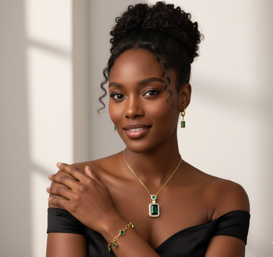 Ensemble Éclat Émeraude – Collier, Boucles d’Oreilles & Bracelet